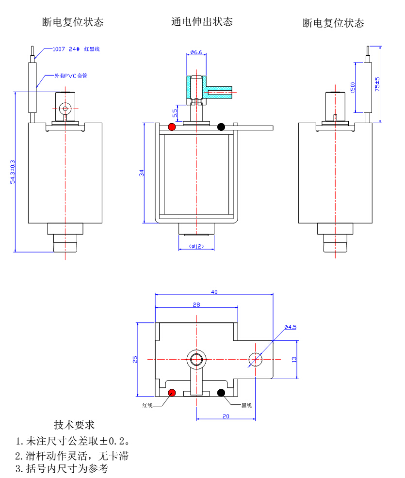 一、汽車波箱換擋器電磁鐵的尺寸圖: