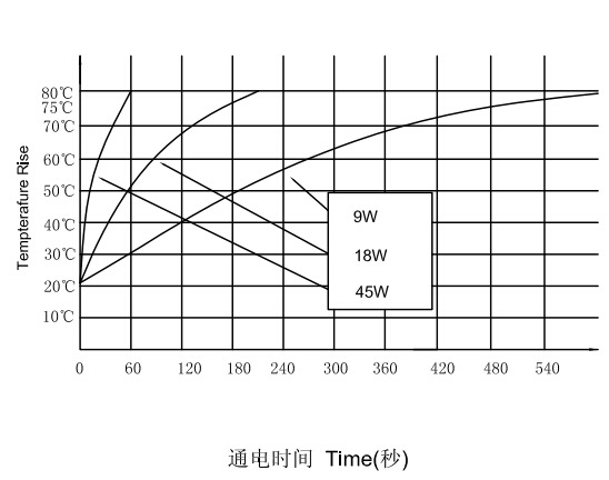2,圖中四條線分別代表四種功率以及相應(yīng)的通電頻率。